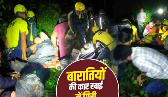 नई टिहरी,। टिहरी में देर रात एक दर्दनाक सड़क हादसा हो गया। ऋषिकेश के गुमानीवाला से नरेंद्रनगर के नाई गांव जा रही बारातियों की कार खाई में गिर गई। जिससे मौके पर ही तीन युवकों की मौत हो गई। जबकि दो युवक घायल हो गए। सभी युवक श्यामपुर ऋषिकेश के बताए जा रहे हैं। घटना के बाद पुलिस, प्रशासन और एसडीआरएफ ने देर रात तक रेस्क्यू अभियान चलाया और घायलों के साथ ही शवों को भी कड़ी मशक्कत के बाद बाहर निकाला। हादसे की सूचना खाई में गिरे एक युवक ने दी।