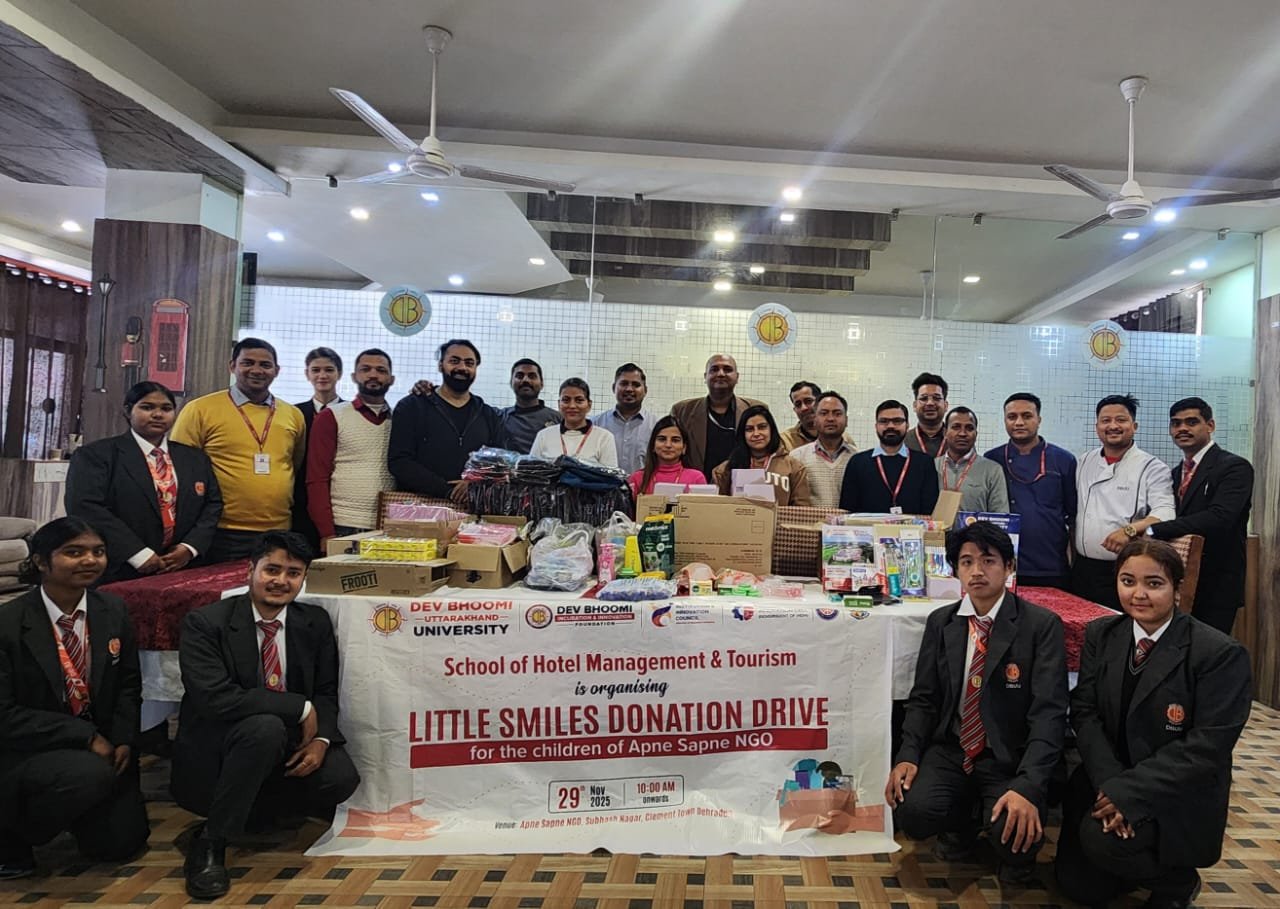 देहरादून,। अपने सपने एनजीओ सुभाषनगर स्थित संस्था प्रांगण में जरूरतमंद बच्चों के लिए “लिटिल स्माइल“ नामक कार्यक्रम का आयोजन देवभूमि उत्तराखंड यूनिवर्सिटी के स्कूल ऑफ़ होटल मैनेजमेंट विभाग द्वारा किया गया। इस अवसर पर स्कूल ऑफ़ होटल मैनेजमेंट विभाग के छात्र छात्राओं द्वारा अपने सपने एनजीओ के बच्चों से रूबरू हुए वही बच्चों के साथ खेल-कूद, गीत-संगीत एवम् जीवन में शिक्षा के महत्त्व को लेकर जानकारियां दी गयी।