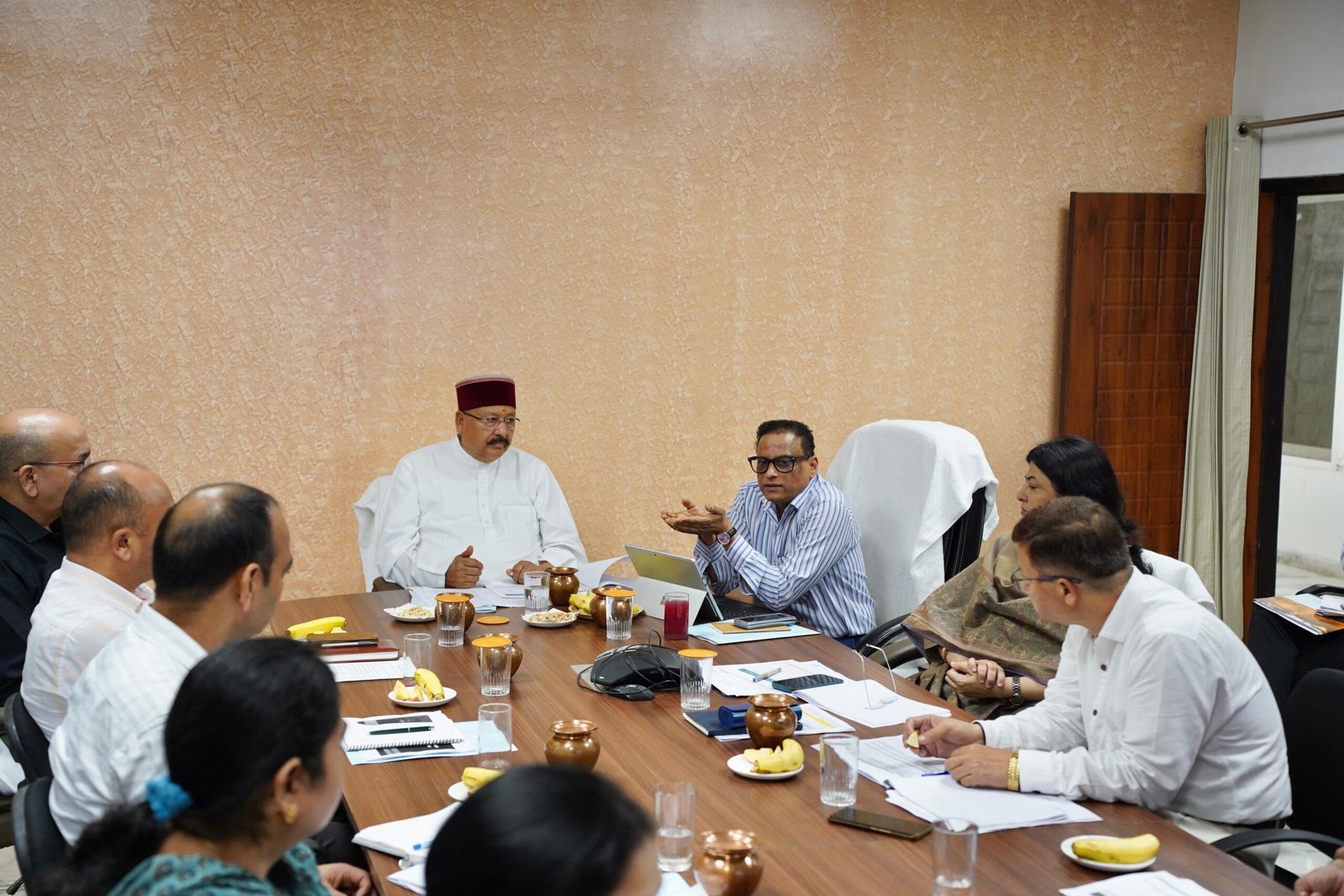 पंचायतीराज एवं जलागम मंत्री श्री महाराज ने ग्राम पंचायत स्तर पर सामुदायिक सहभागिता के माध्यम से ष्ग्राम पंचायत जलागम विकास योजनाष् के निरूपण और ग्राम पंचायत स्तर पर चुने हुए प्रतिनिधियों की देखरेख में प्राकृतिक संसाधनों, जल स्रोतों के पुनरोद्धार एवं संरक्षण तथा कृषि उन्नति की कार्य योजनाओं की भी समीक्षा की। उन्होंने बताया कि जलागम विभाग द्वारा प्रदेश में धारे-नौलों के संरक्षण के लिए ग्राम पंचायत स्तर पर ग्राम प्रधान की अध्यक्षता में समिति का गठन करने के साथ-साथ धारे-नौलों एवं नदियों के चिन्हीकरण, उपचार हेतु स्थानीय भागीदारी सुनिश्चित कर उनके संरक्षण के लिए अन्तर्गत जीआईएस प्लेटफॉर्म तैयार किया जा रहा है। वातावरण में कार्बन डाइऑक्साइड एवं जहरीली गैसें के उत्सर्जन के प्रभाव को नियंत्रित करने के लिए खाली पड़ी निजी एवं सरकारी भूमि पर पेड़ लगाने के लिए कार्बन क्रेडिट योजना पर भी अधिकारियों को आवश्यक दिशा-निर्देश दिए गए। बैठक में जलागम सचिव दिलीप जावलकर, पंचायती राज निदेशक निधि यादव, जलागम की परियोजना निदेशक कहकसा नसीन, अपर सचिव पंचायती राज श्याम सिंह, संयुक्त सचिव ध्रुव मोहन राणा, त्रिपाठी, अपर निदेशक मनोज तिवारी एवं रविनाथ रमन त्रिपाठी एवं डॉ अनुज कुमार डिमरी सहित पंचायतीराज विभाग एवं जलागम विभाग के अनेक अधिकारी मौजूद थे।