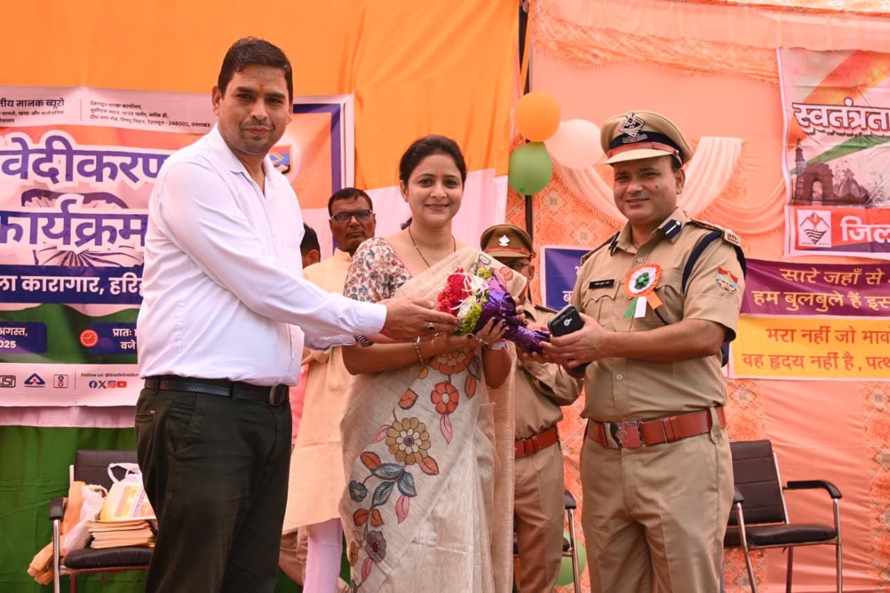 देहरादून,। स्वतंत्रता दिवस एवं ‘हर घर तिरंगा अभियान’ के अवसर पर भारतीय मानक ब्यूरो, देहरादून शाखा ने स्वतंत्रता दिवस परजिला कारागार, हरिद्वार में कैदियों के लिए संवेदीकरण कार्यक्रम का आयोजन किया। इस अवसर पर जिला कारागार प्रशासन से वरिष्ठ अधीक्षक मनोज कुमार आर्या, प्रभारी जेलर विकास चन्द्रा, उप जेलर प्रमोद दानू और मुख्य फार्मासिस्ट आर.सी. गैरोला विशेष रूप से उपस्थित रहे।